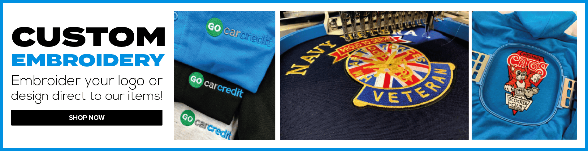 We are a family-run business with 35+ years of experience based in the centre of Birkenhead, but we offer delivery UK-wide. Our custom embroidery and clothing printing service offers a fast turnaround using only the best materials and equipment to complete your order.